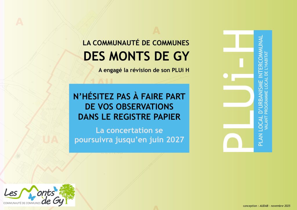 Rendez-vous sur le site internet de la Communauté de Communes des Monts de GY pour suivre son avancement, en suivant ce LIEN