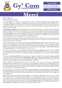 Le conseil municipal de la commune de Gy est composé de 15 membres :